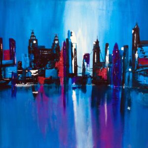 Breathtaking abstract cityscape bathed in warm hues of gold and red. The towering skyscrapers, rendered in shimmering gold, reflect the fiery glow of the setting sun on the calm waters below. The overall effect is one of a majestic and opulent metropolis, bathed in the golden light of a magical sunset. It’s a reminder of the fleeting beauty of existence, a moment captured in time, a testament to the grandeur and fragility of human civilization.